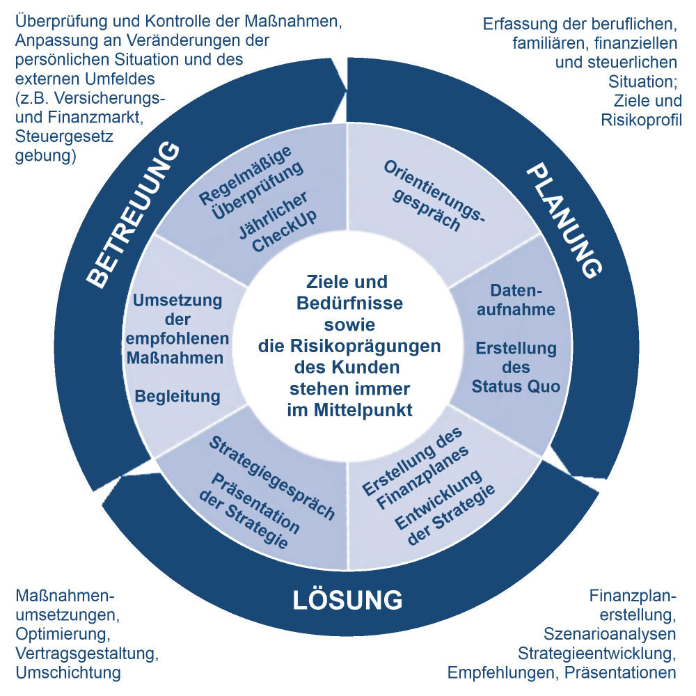 Um auf hohem Niveau eine Finanzplanung durchführen zu können ist die Spezialisierung auf bestimmte Berufsgruppen, der regelmäßige Erfahrungsaustausch mit meinen Beraterkollegen, die die gleichen Berufsgruppen beraten, sowie das Zugreifen auf Spezialisten sehr wichtig.